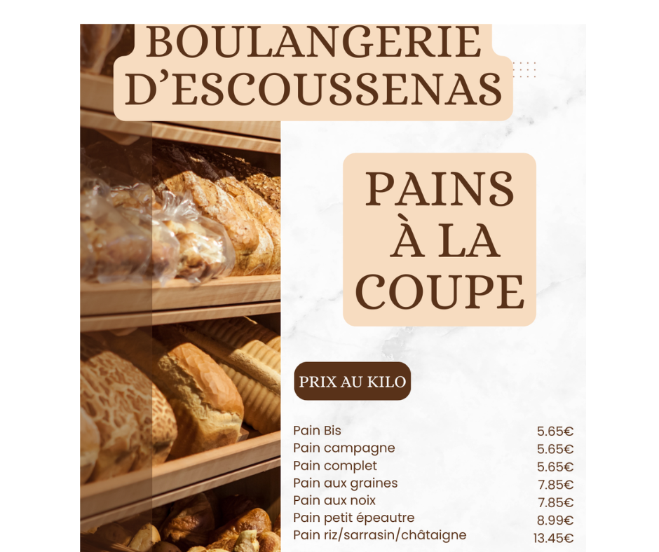 Pains vendus au poids, fabriqués par la boulangerie d'Escoussenas à St Prix en Ardèche