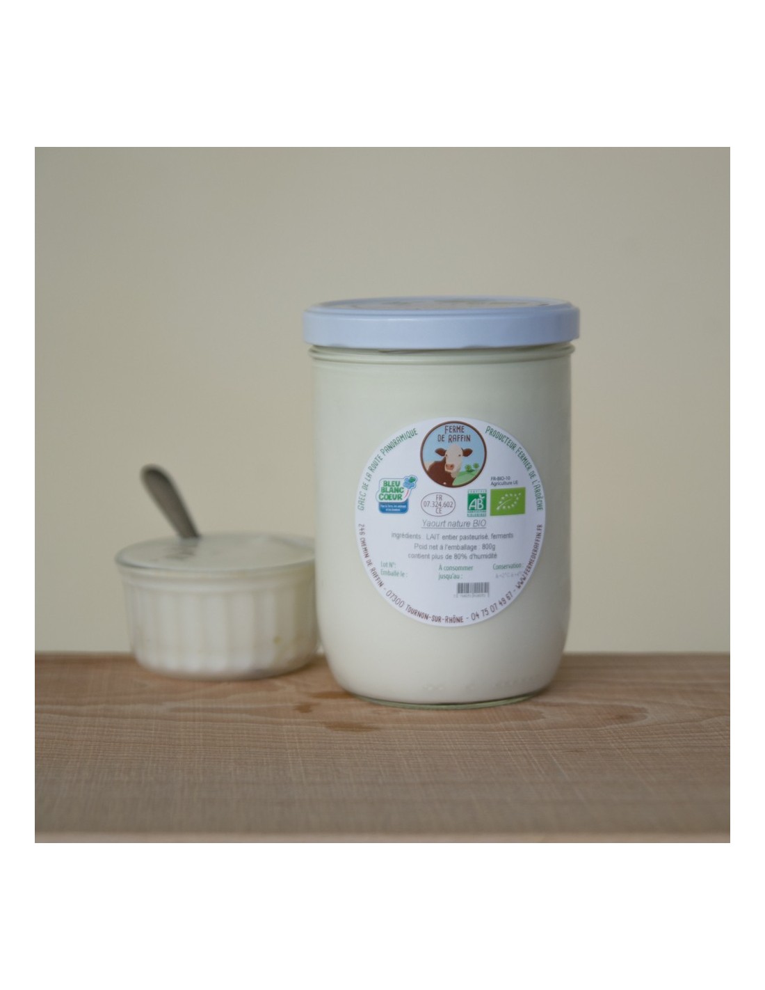 Yaourt au lait bio de vache 800gr pot en verre consigné