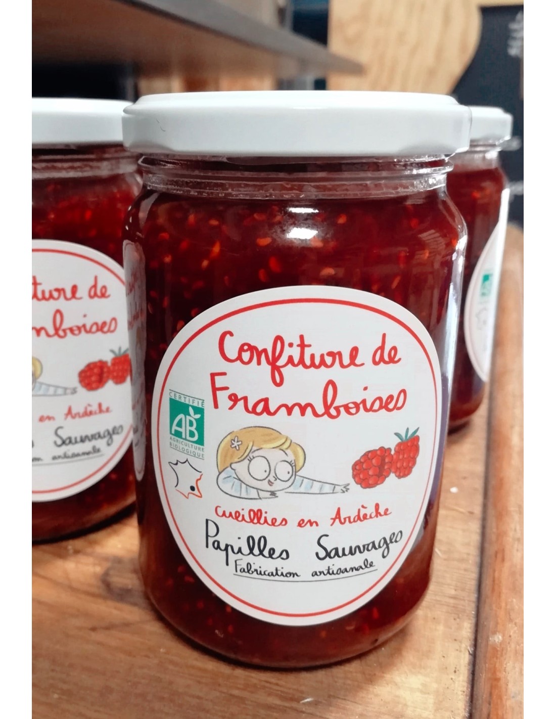 Confiture de Framboises cueillies en Drôme et Ardèche 69% de fruits.